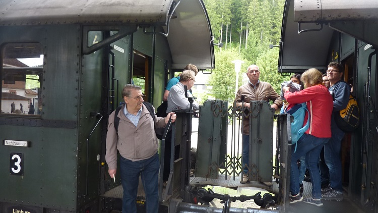 Kurz vor 16 Uhr ging es dann wieder in Richtung Heimat. Zunächst wieder mit dem Dampfzug, wobei auch jetzt die Wagen wieder gut besetzt waren, wenn auch nicht ganz so voll, wie am Morgen. Wer es noch nicht wusste, konnte nun selbst hören, warum diese Wagen „Donnerbüchsen” genannt werden.