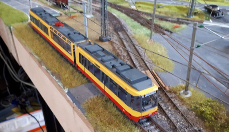 Daniel Hübners H0-Tramanlage, das „Karlsruher Modell“ simulierend, wurde von den Freunden der Modellgruppe Südwest aus München