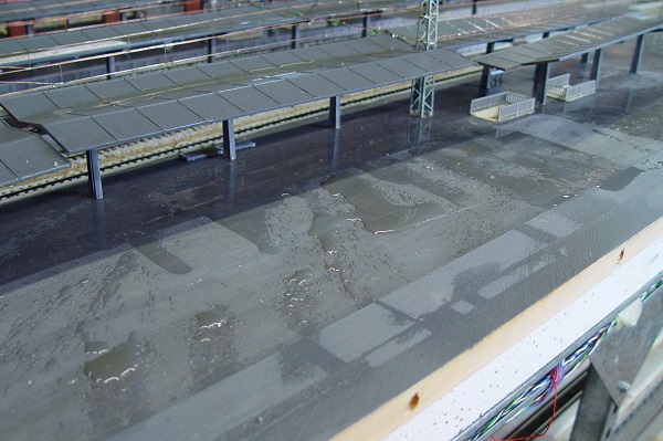 | überfluteter Bahnhof Durlach während dem Abbau |