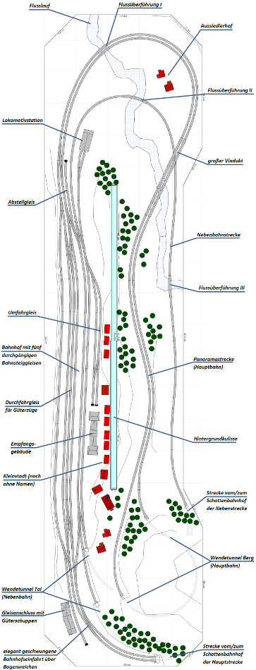 der „Wandseite&rdquo unseres Anlagenraums angelegt wird. Durch diesen führen eine zweigleisige elektrifizierte Hauptstrecke
