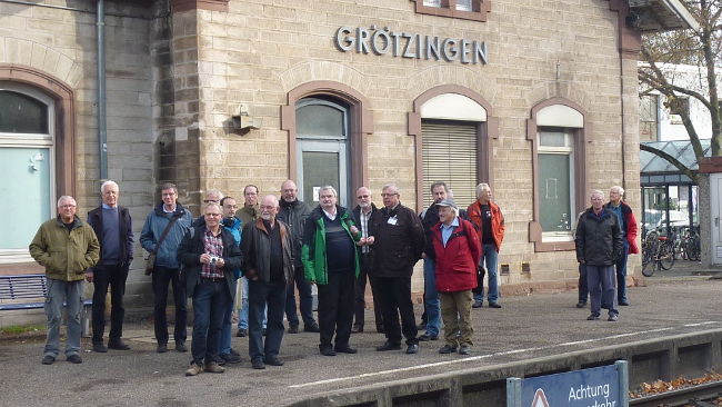 Zunächst war eine Stadtrundfahrt mit einem Sonderzug vorgesehen. Durch zu geringe und zu späte Anmeldungen musste dieses Vorhaben leider aufgegeben werden. Daher fand die Stadtrundfahrt mit normalen Linienzügen statt. Treffpunkt war um 10 Uhr am Hauptbahnhof. Hier trafen sich 15 Gäste und fünf MEKler. Von dort ging es zu Fuß zum Albtalbahnhof.